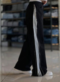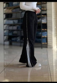شلوار بگ بغل زیپ کتان بنگال مشکی مدل سه خط اسپرت قد ۱۰۵